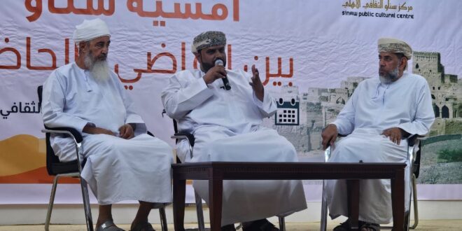 في إطار زيارة جمعية الصحفيين العُمانية لمحافظة شمال الشرقية، نظمت لجنة الصحفيين بمحافظة شمال الشرقية مساء أمس ندوة بعنوان “سناو بين الماضي والحاضر”، وذلك بمركز سناو الثقافي الأهلي بولاية سناو، بحضور عدد من المسؤولين وأعضاء جمعية الصحفيين العُمانية وجمع من الأهالي والمهتمين بالشأن الثقافي.
