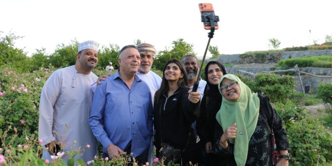 كما شملت الزيارة ولاية الجبل الأخضر التي تُعد من أبرز الوجهات السياحية في المحافظة، حيث اطّلع الوفد على خصائصها البيئية والزراعية، وخاض تجربة مسار الورد في قرية العقر، بوصفها نموذجًا متكاملًا يربط بين السياحة والاقتصاد المحلي والموروث الزراعي، ويعكس خصوصية البيئة الطبيعية التي تتميز بها الولاية.